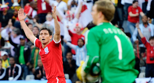 England's Frank Lampard (L) appeals to the referee after his goal against Germany was disallowed during a 2010 World Cup second round soccer match at Free State stadium in Bloemfontein June 27, 2010. -Photo by Reuters