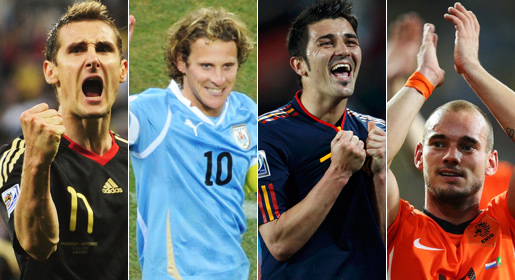 Miroslav Klose of Germany, Uruguay’s Diego Forlan, Spain’s David Villa and Wesley Sneijder for the Dutch have become the unlikely heroes at a tournament that has refused to follow the script envisaged by marketing executives worldwide.