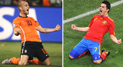 Their opponents The Netherlands by contrast provide two in the form of Bayern Munich winger Arjen Robben and Inter Milan playmaker Wesley Sneijder, joint top scorer along with Villa at the finals with five goals.