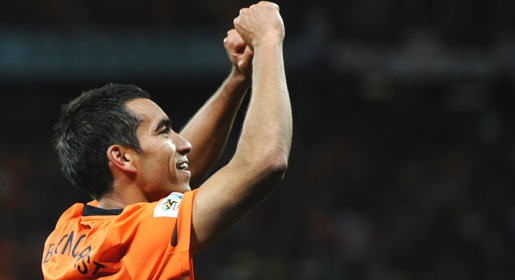 Giovanni van Bronckhorst gave the Dutch the lead with a blistering 35-meter left-foot drive that sailed past Fernando Muslera and went in off the post to break open the game against Uruguay. - AFP Photo
