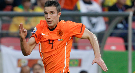 Netherlands' Robin van Persie runs during the World Cup quarterfinal soccer match between the Netherlands and Brazil. -Photo by AP